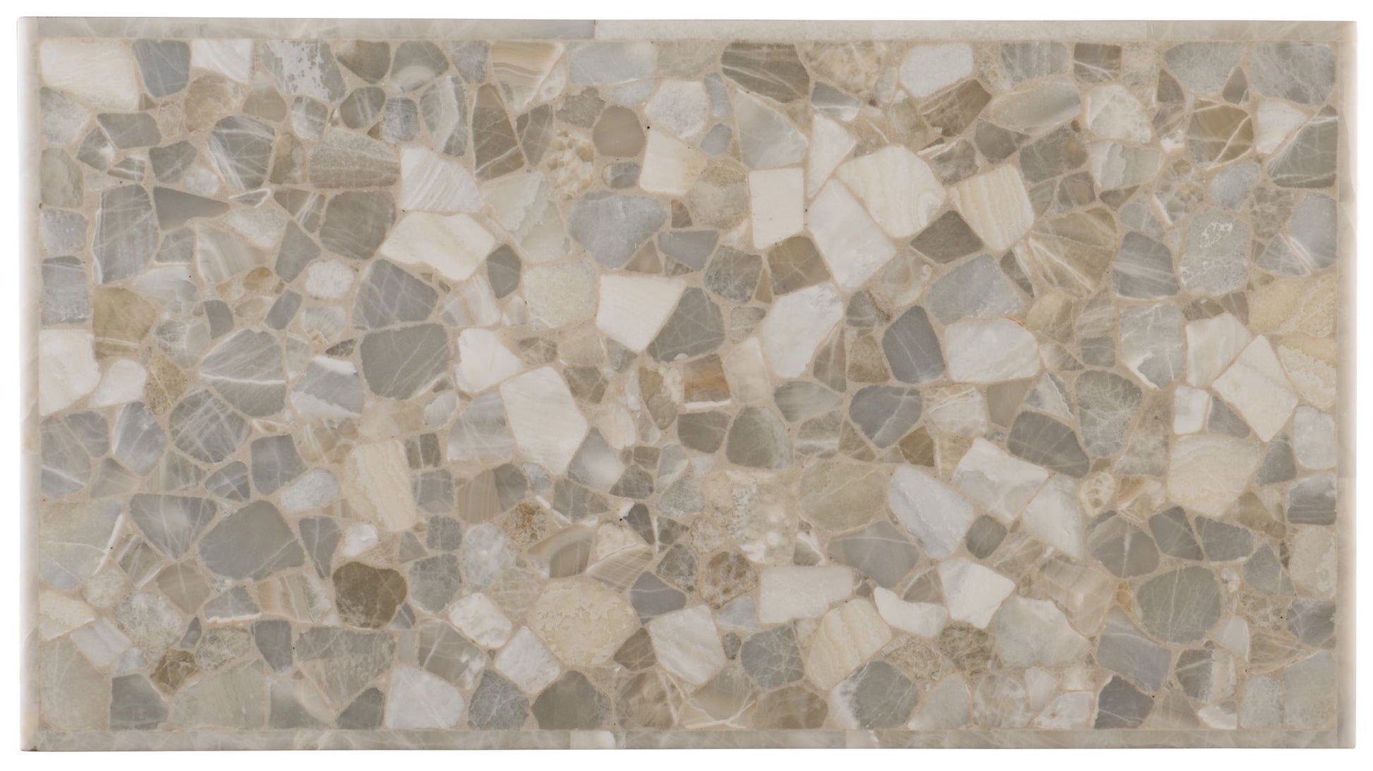 Sleek meets organic with the Marin Cocktail Table, featuring a pewter metal base and a tumbled white onyx tabletop for a fresh modern appeal.
