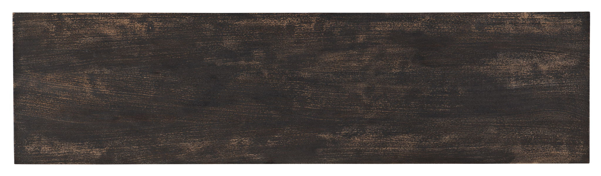 A bold and artistic marriage of Mango Wood, brass and agate stone, the Tara Credenza has a honeycomb-pattern metal overlay and an antique bronze colored starburst on the doors. The case is finished in a black with rub-through, and the dramatic hardware has a turquoise and brown agate center and metal frame. One adjustable shelf behind each pair of doors.