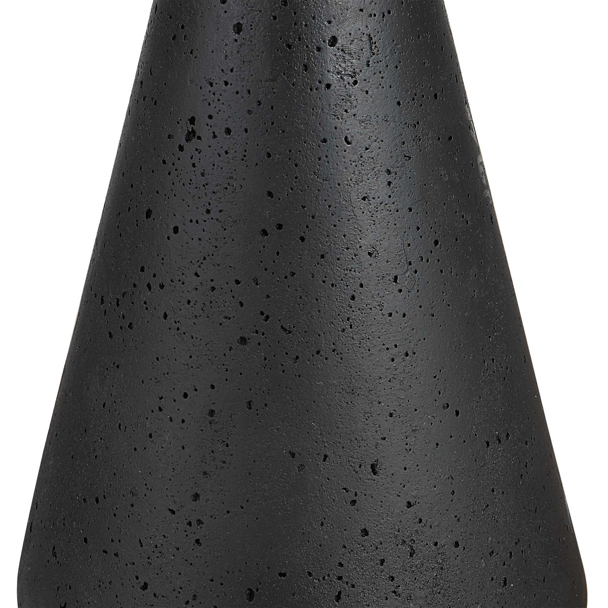 This Accent Table Makes A Dramatic Statement With Its Sleek, All Black Design. The Slim Steel Rod Is Accented By A Black Man-made Stone Top And Foot With A Noticeably Porous Texture.