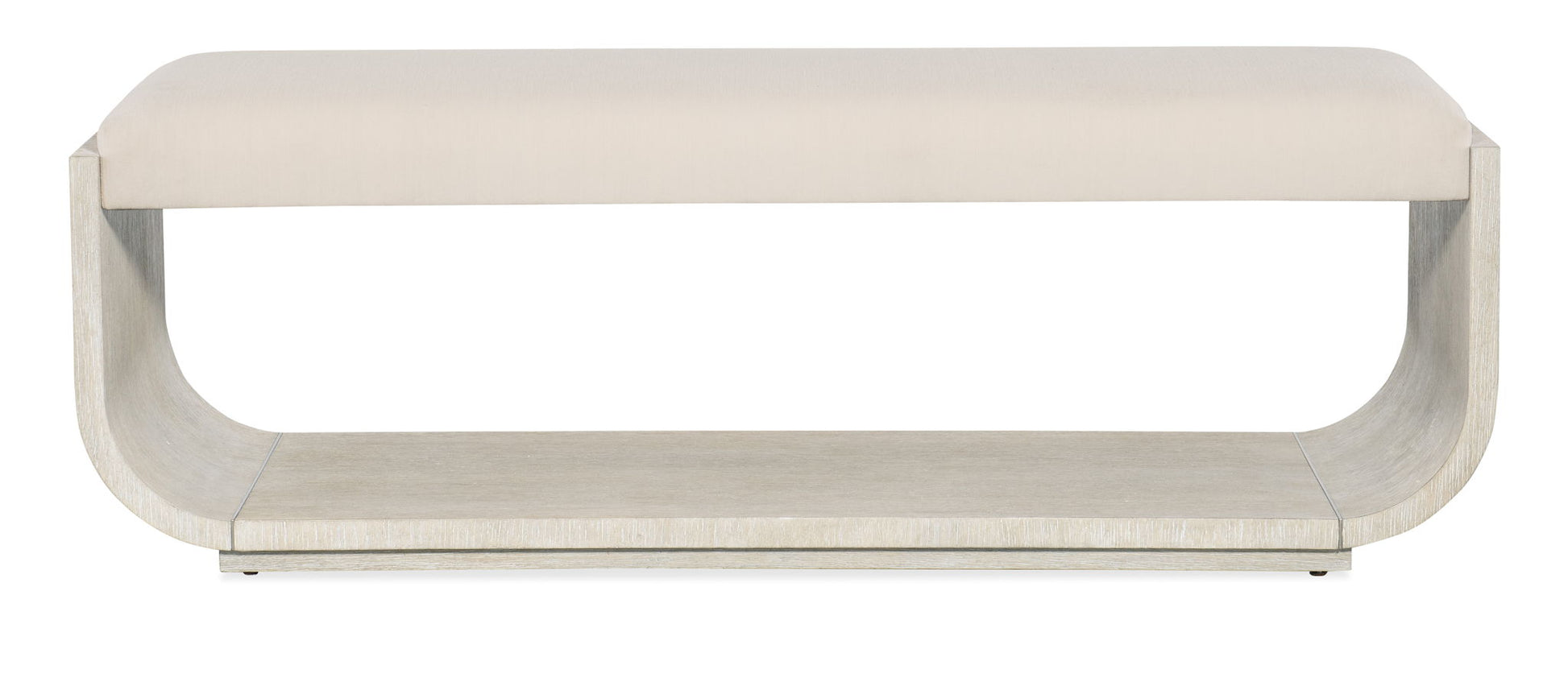 Serene, soft and stylish with a cloud-like floating appearance, the monochromatic Modern Mood Bench is upholstered in a cozy Boucle fabric and finished in the crystal-like Diamond color with wire-brush detailing. The base is crafted of Quartered Oak Veneers.