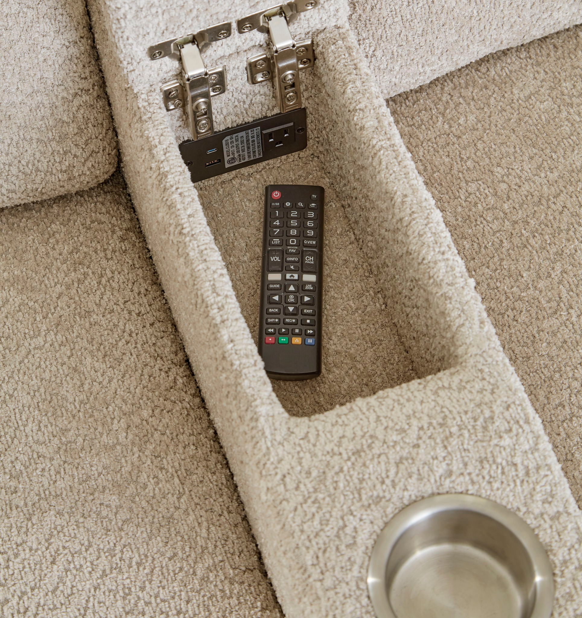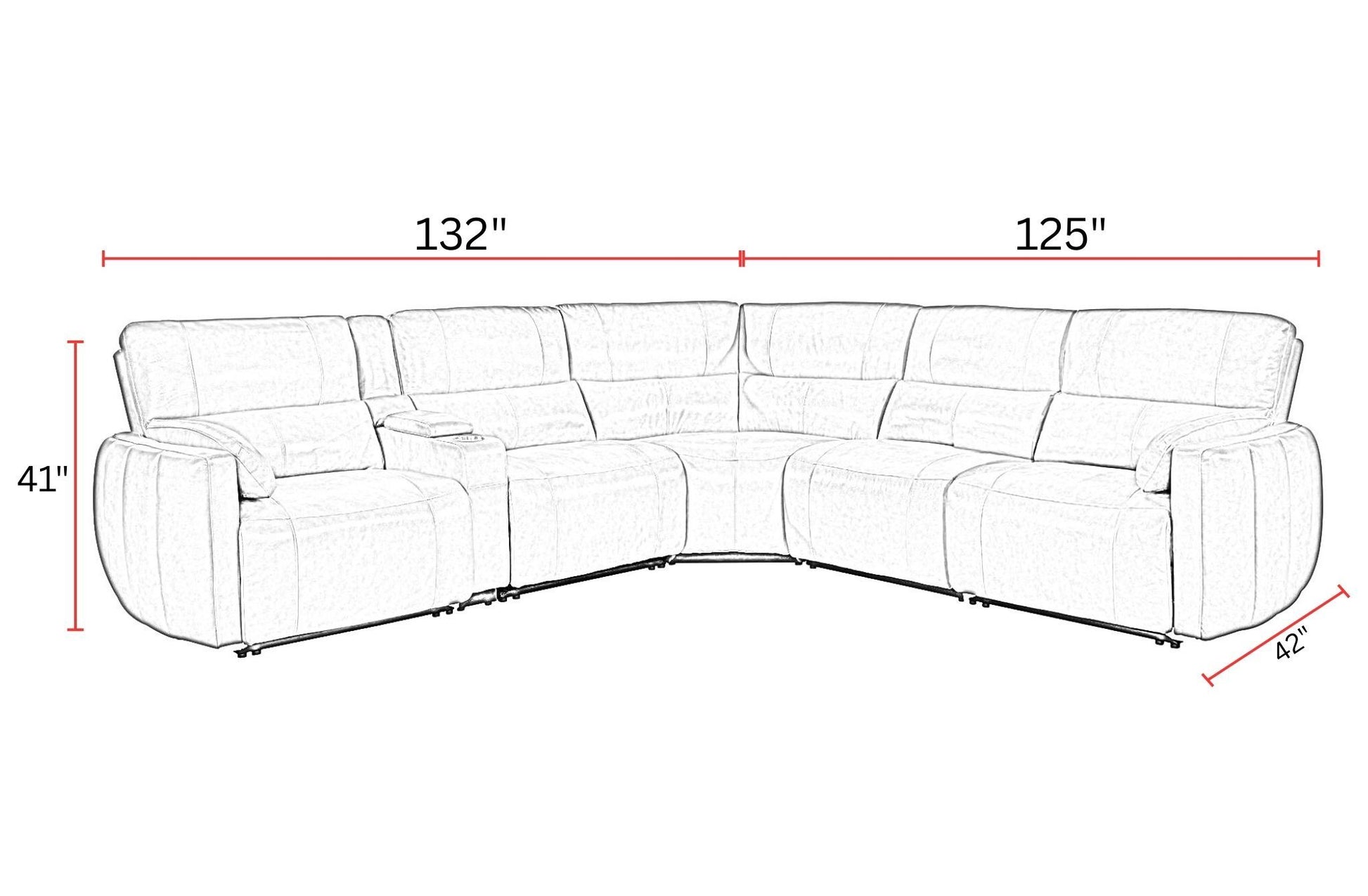 Covered in gorgeous supple colored leather with custom match, this transitional sectional features convenient power headrest and recline functions. Modesto's unique slender storage consoles feature a power center and a cup holder, offering a modern spin on the traditional sectional console. Two comfort arm pillows come included, ensuring that you maintain your preferred level of comfort no matter how you choose to relax.