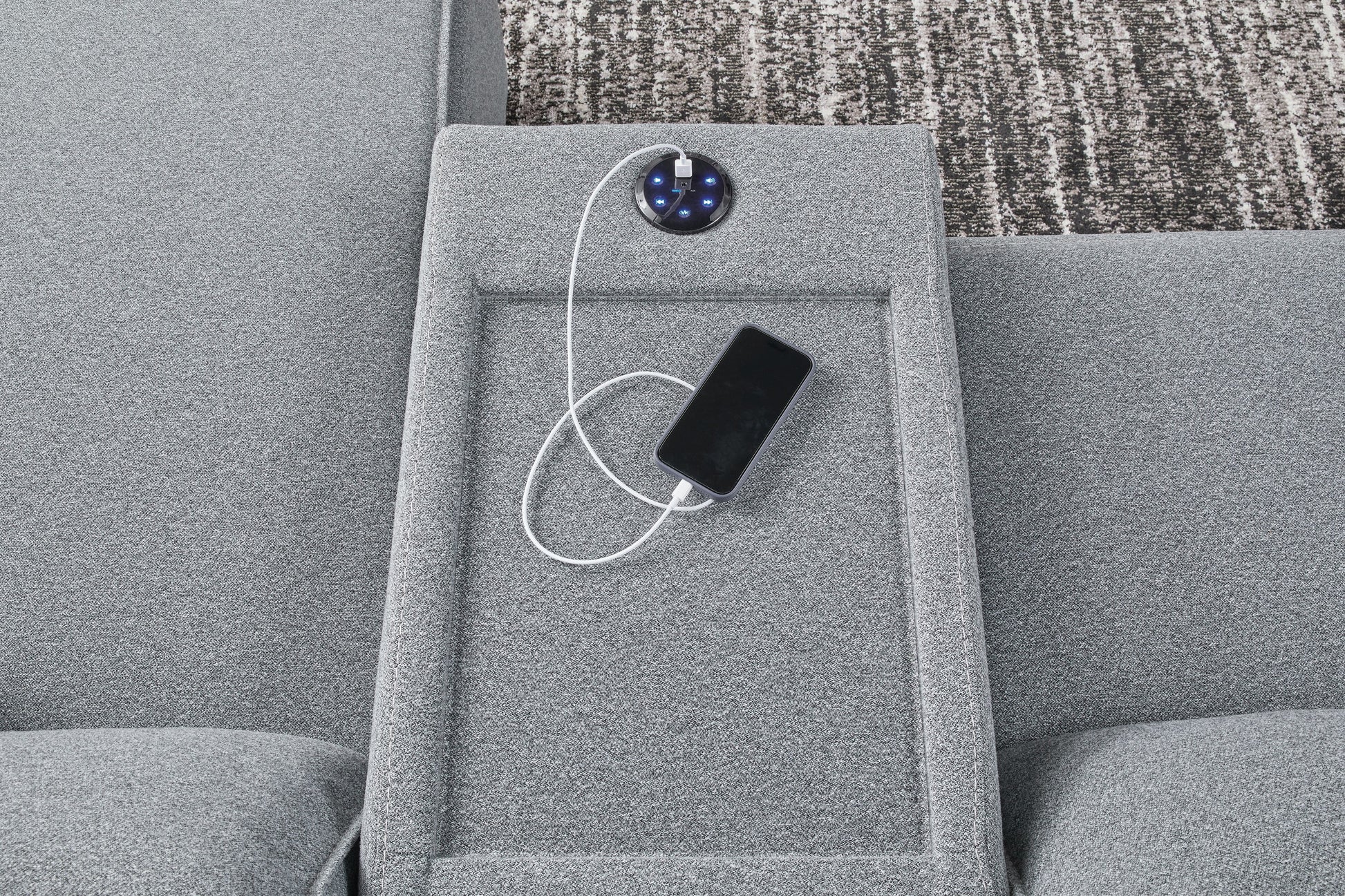 ModMax II - 3-Piece Power Reclining Sectional With Audio Console - Salt And Pepper