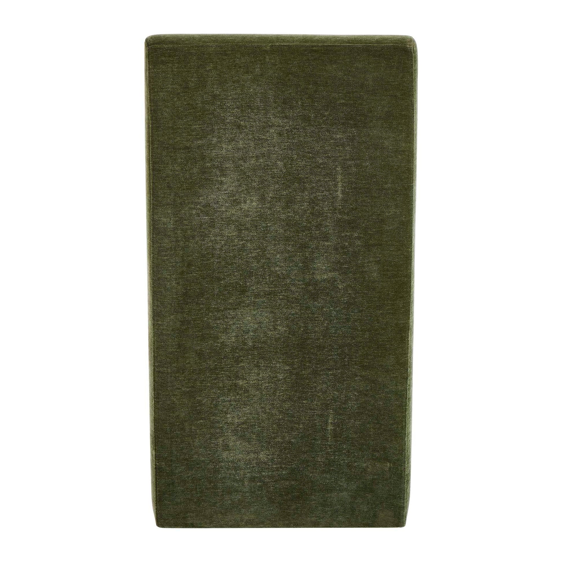 A Study In Modern Simplicity, This Armless Slipper-style Dining Chair Is Fully Upholstered In A Plush, Moss-toned Distressed Velvet That Brings Rich Texture And Warmth To Any Space. Complete With Rolling Casters For Ultimate Ease Of Use.