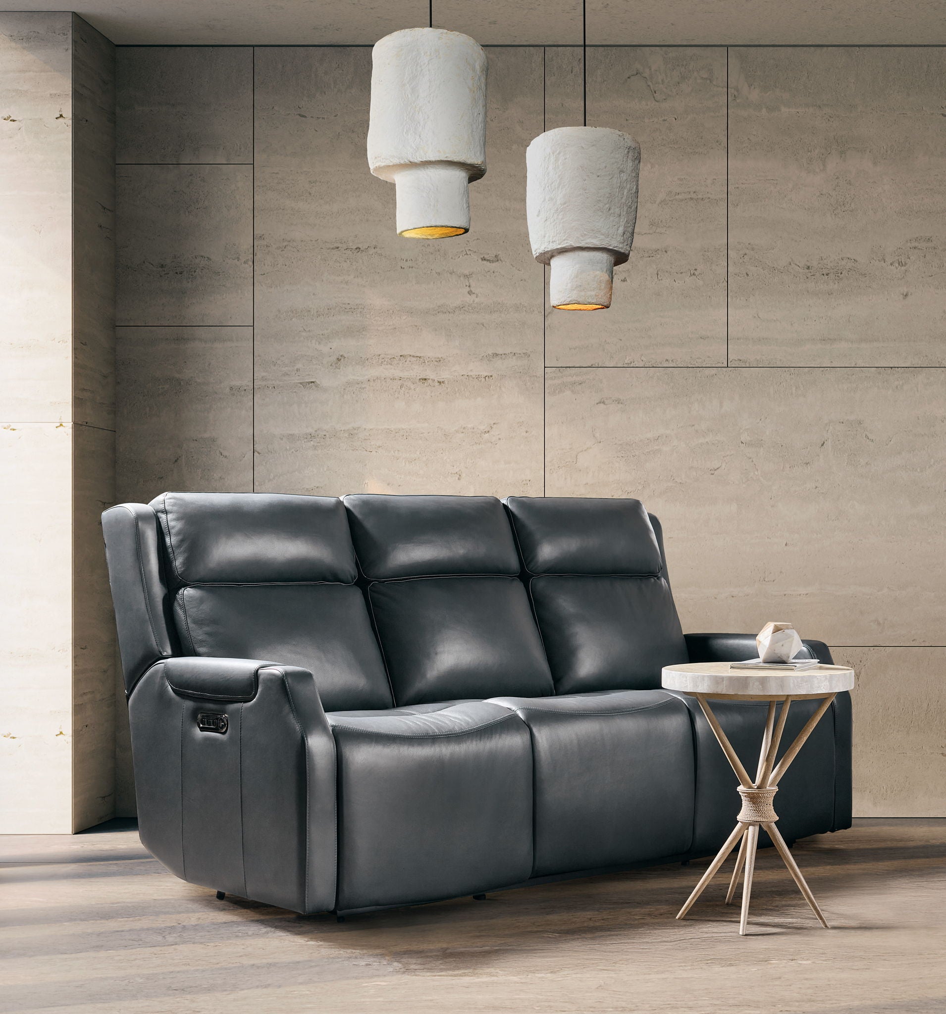 The Nelson Zero Gravity Power Sofa brings luxurious comfort with its zero-gravity recline, power headrests, and lumbar support. Upholstered in Finished Top Grain leather, this sofa is designed for modern living with clean lines and a refined aesthetic. It also features a USB and USB-C port for added functionality.