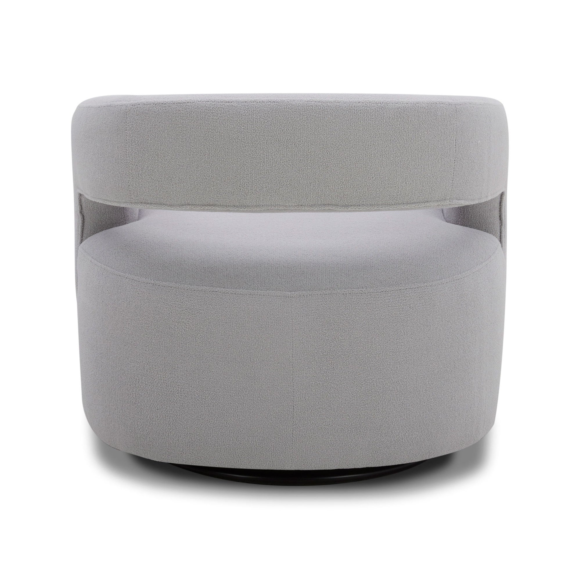 Most likely to be voted stunning, the Orbit accent chair is sure to impress. An open back gives this barrel chair its high-style allure while its swivel feature makes it a décorating essential. Orbit makes a signature addition to the living room, bedroom, home office or anywhere you need a touch of fashion sensibility.