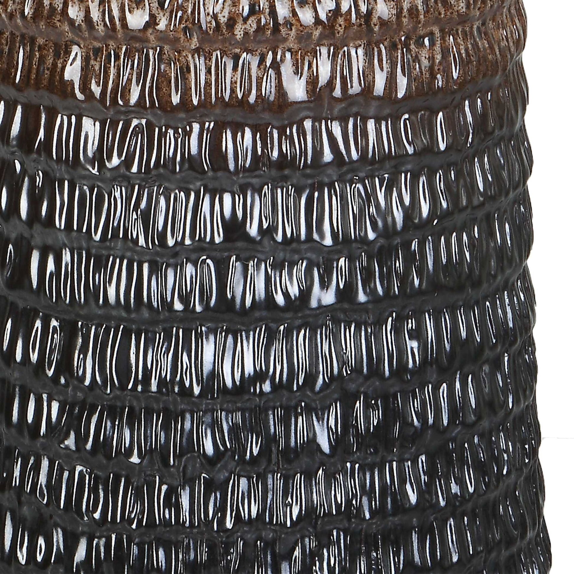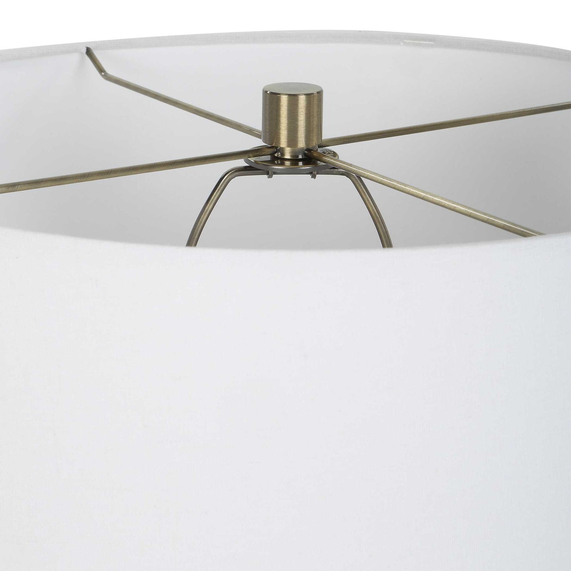This Table Lamp Displays A Unique, Organic Feel With A Carved Ceramic Base Finished In A Mottled Ombre Effect From Aged Ivory Down To Dark Chocolate, Accented With Plated Brushed Brass Details. Paired With A Tapered Hardback Drum Shade Covered In A Casual White Linen Fabric.