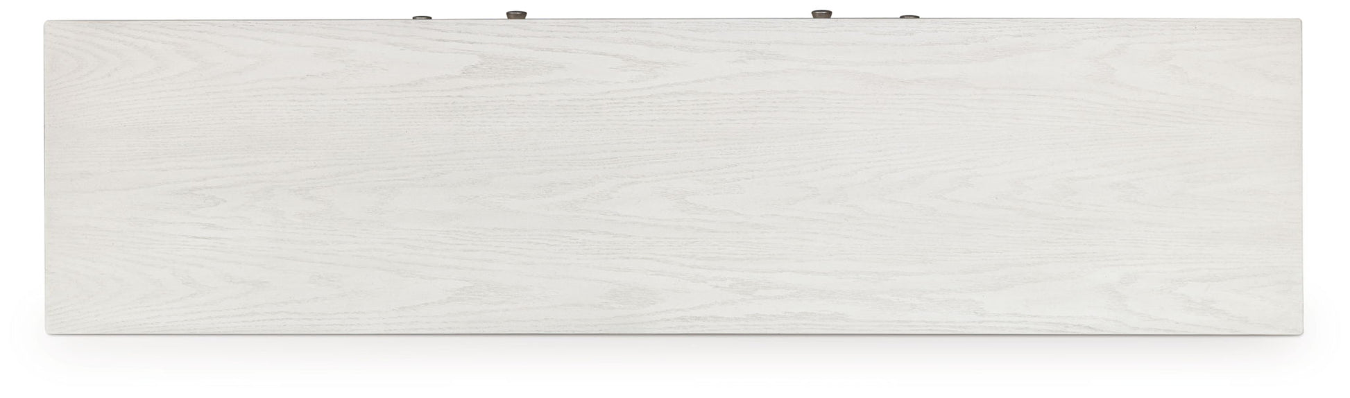 - Antiqued white finish with wood grain texture