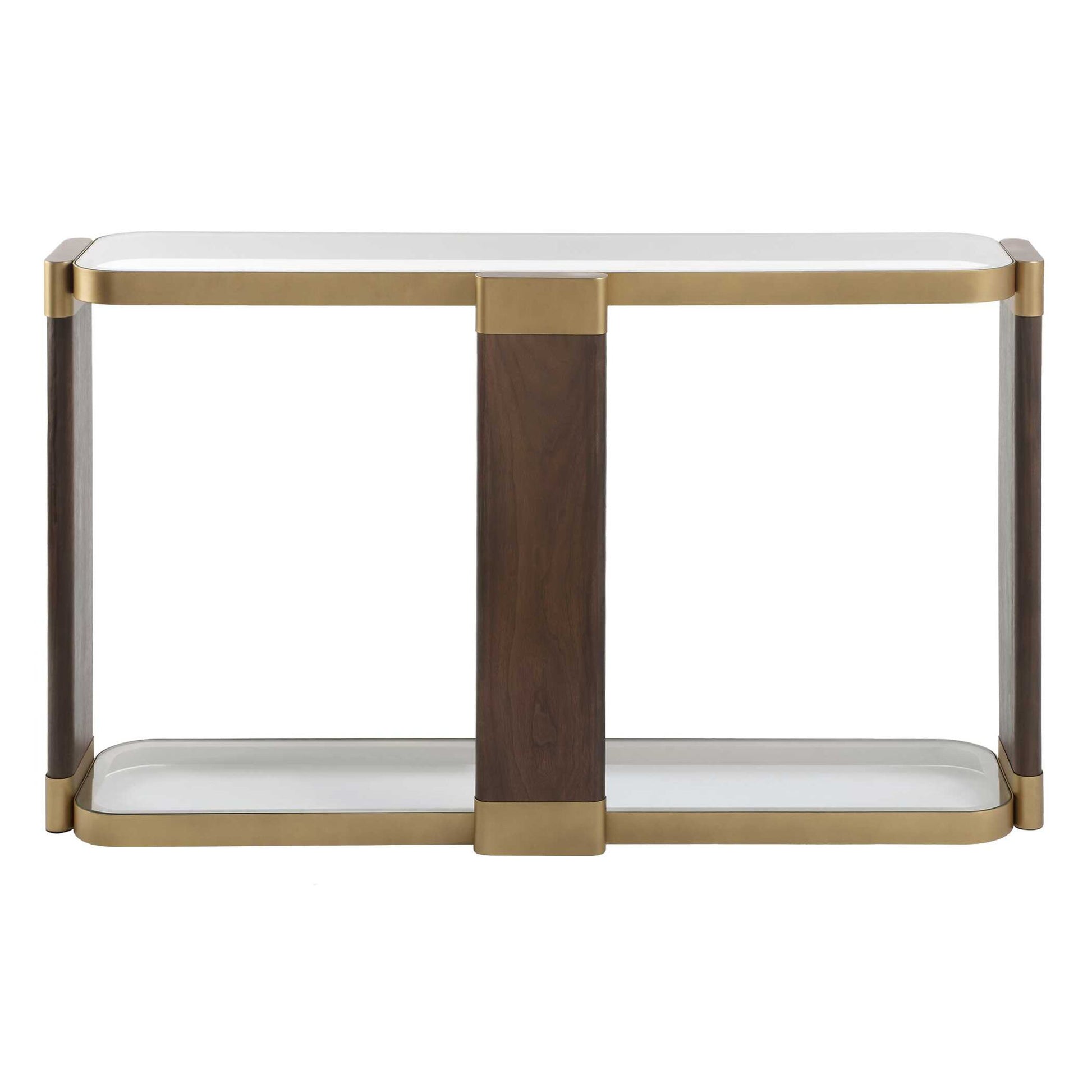 Ryles - Glass Console Table - Brass / Brown / Woodtone