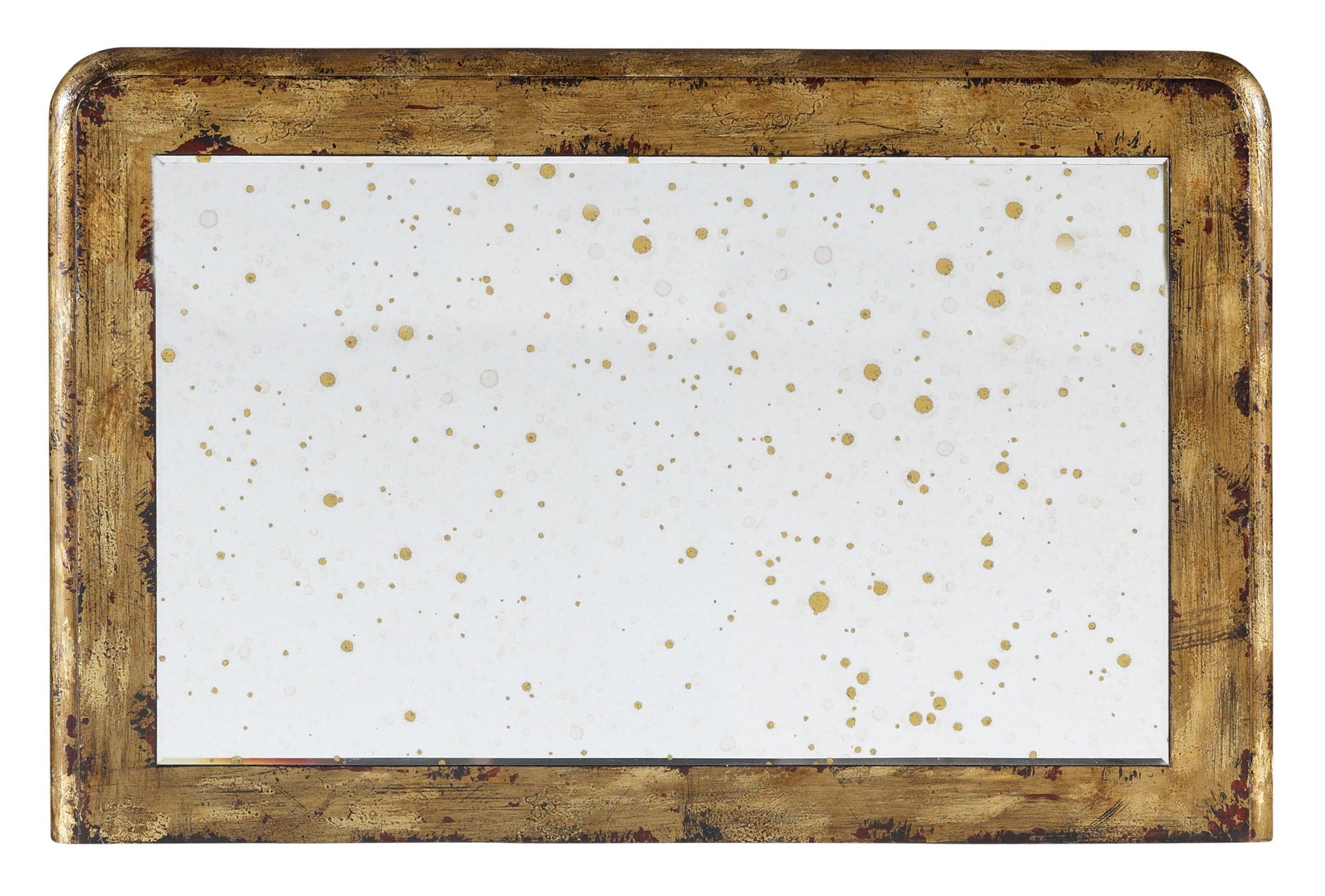 Indulge your love of blingy accents and graceful curves with this beautiful mirrored nightstand, finished in a rich gold accented by gold leafing. Romantic antique mirror adorns the drawer fronts and the top surface. Crafted of Poplar Solids with Birch Veneers.