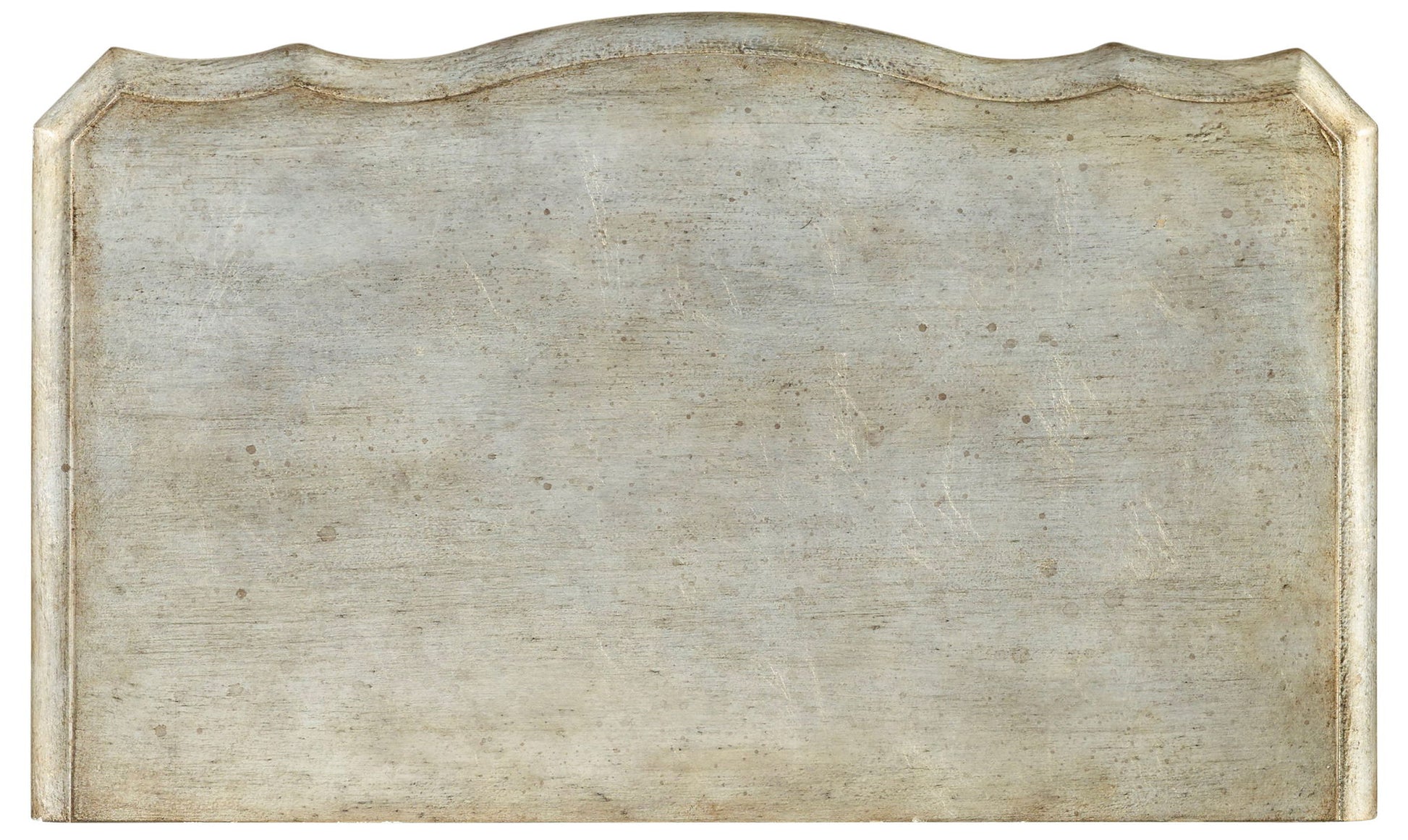 Inspired by an 18th Century French Antique, this curvy three-drawer bombe-shaped nightstand is all elegance in a silver leaf finish with slightly aged patina and opulent hardware.