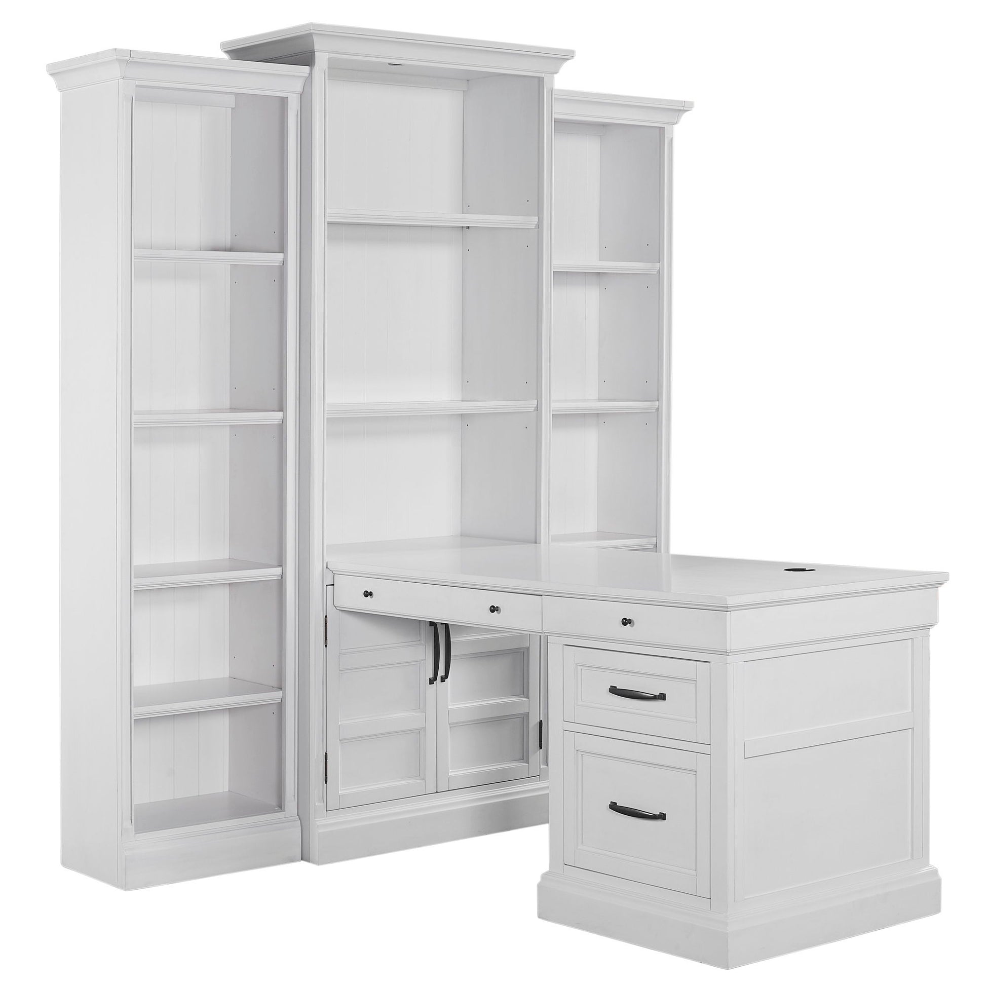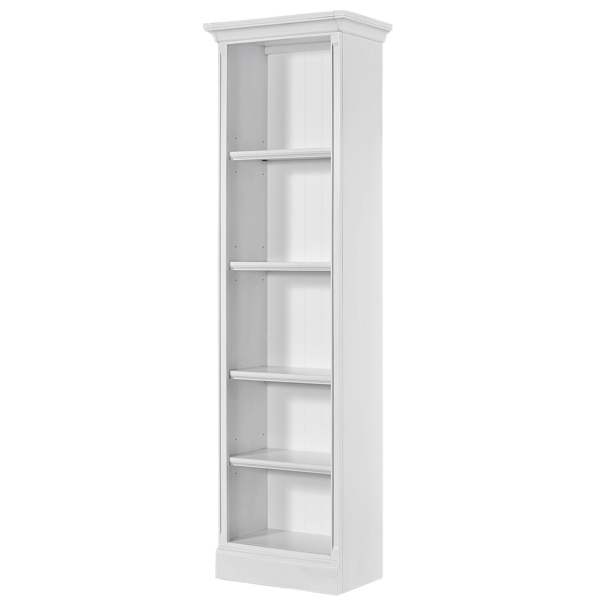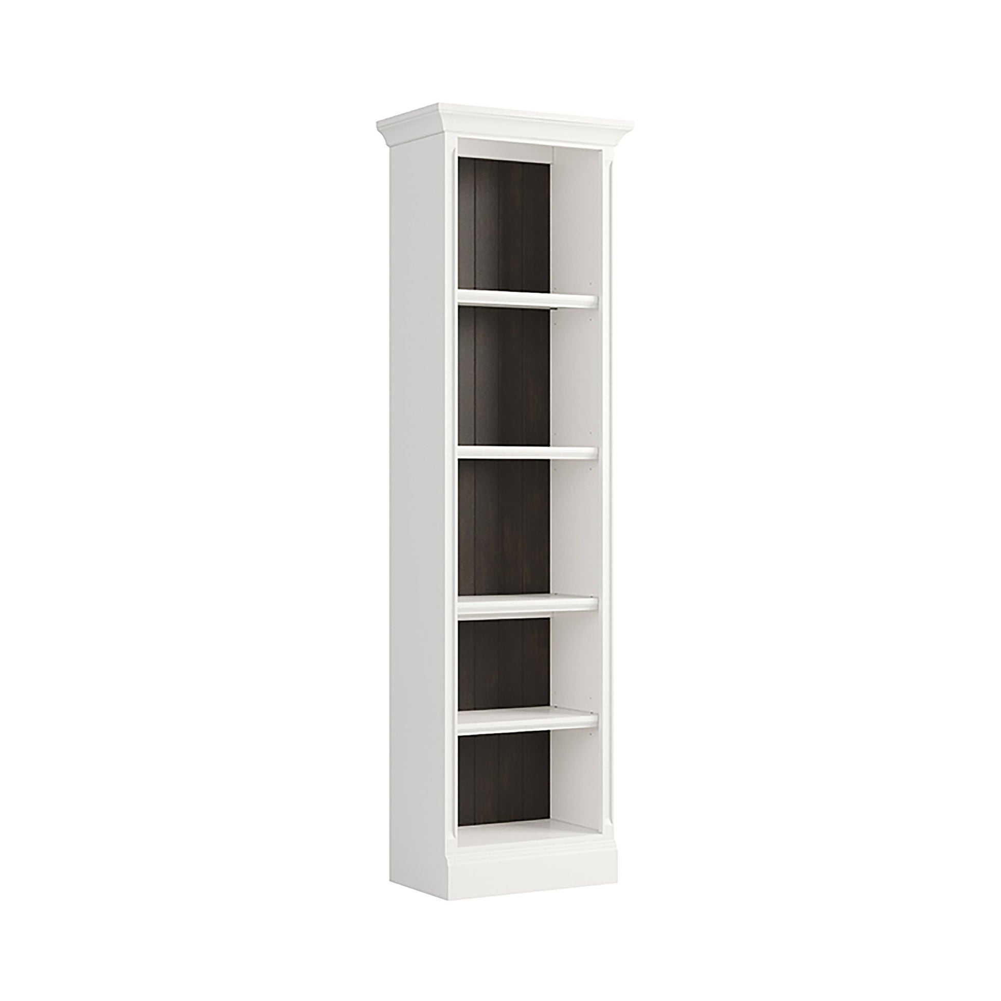 This bookcase provides the perfect blend of style and functionality. The gorgeous effortless white finish over birch veneers is contrasted by a medium roast brown finish and accented with burnished nickel hardware, creating a unique and eye-catching piece that is sure to elevate any room. The back panels can be reversed for two distinct looks, and the removable side crown moldings allow bookcases to be bunched together for a more customized and cohesive look. Whether you're using it in your living room, home office, or bedroom, our bookcase provides ample storage space for your books and decor while adding a stylish touch to your home.