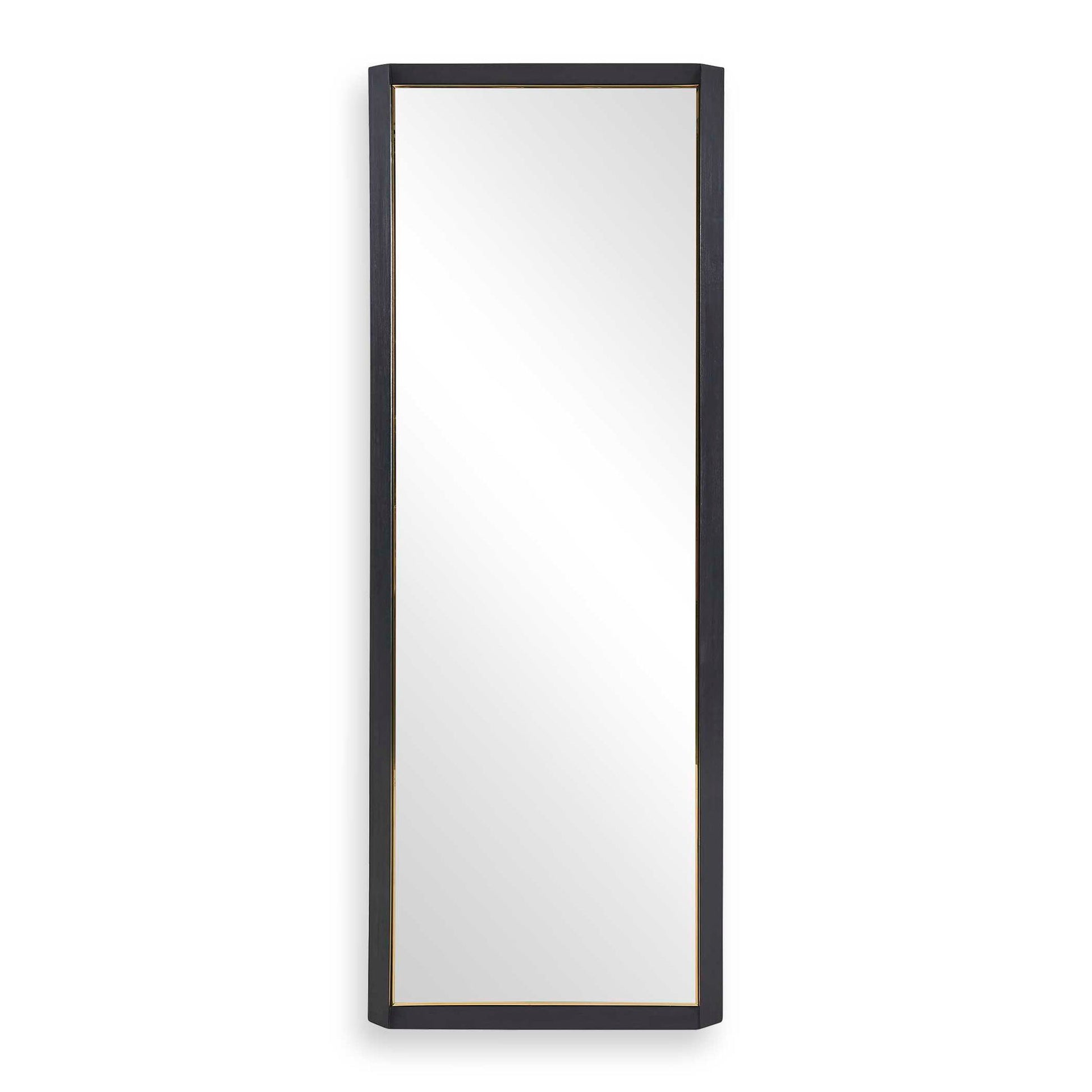 The Stenton Tall Mirror Features A Solid Wooden Frame With Angled Detailing, Finished In Sleek Black, Accented With A Petite Plated Gold Inner Ledge. May Be Hung Horizontal Or Vertical.