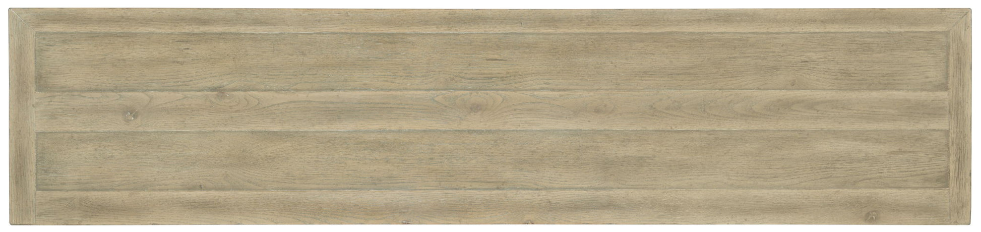 Inspired by laid-back California coast, the Surfrider Entertainment Console exudes character with four diamond-motif reeded front doors with soft-close hinges and touch latches. Crafted of Pecan Veneers with a Solid Wood edge top, the console has one adjustable vented wood shelf behind each pair of doors, a ventilated back panel and one 3-plug electrical outlet. The light natural finish is Driftwood, featuring distressing including sandblasting and bleaching.